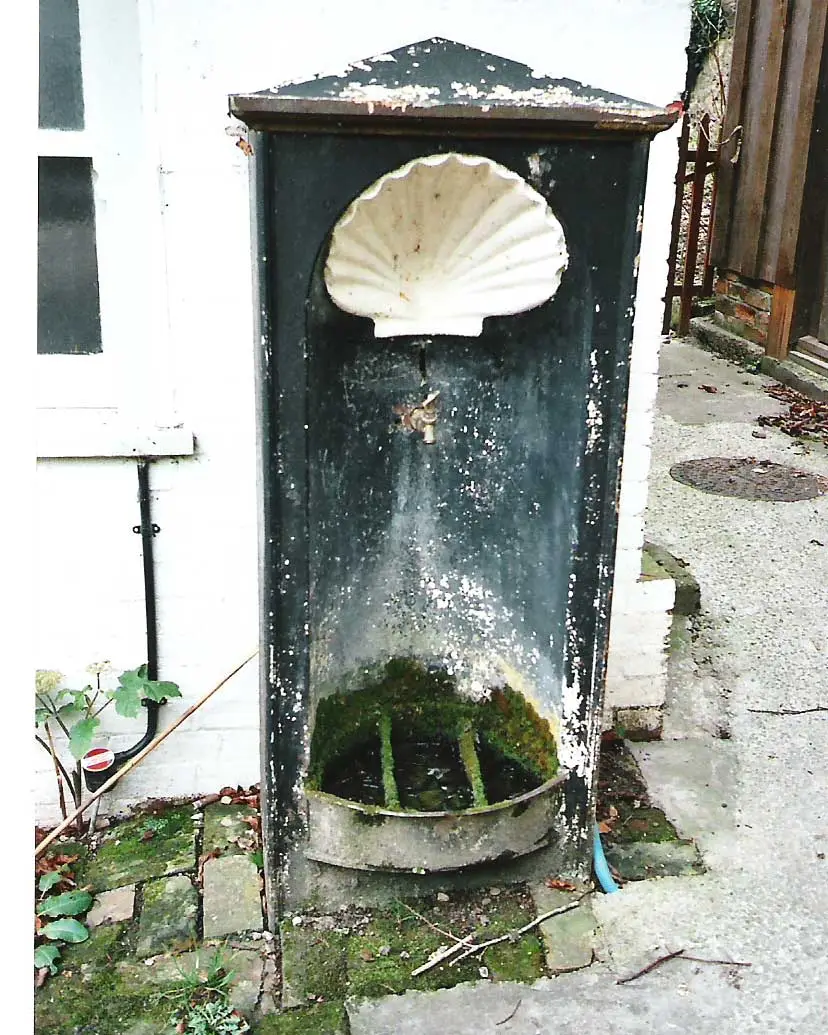 The Glyn Estate instituted catchment water from springs above the village to the north-east, which led into a covered brick and cement reservoir (Lot 67, ‘Piney Wells’) from which 5 communal taps were fed by gravity situated in North St., Lurmer St., Church St. and West St. The Lurmer St. tap is still there but non-functional, and a complete example can be viewed at Springhead (see illustration). The late Ann Locke can remember, when a child at this time, people collecting all their water supplies in buckets, often several times a day, in all weathers and that frost problems occurred in severe winters. The thatched pump outside Pump Cottage is a relatively recent replacement. This piped supply also delivered water direct to at least six favoured properties on the Glyn Estate, but to outside taps only. Thirty-six (46%) of the sale descriptions made no mention of water supply – as there probably wasn’t any. Three properties obtained water from streams. Besides the three overshot water wheels in the mills, there was another one supplying water power by means of linked shafts across Church St to the dairy at Moore’s Farm. This was also an overshot wheel 18 ft in diameter, served from the ‘Parish Pond’ (as described in the catalogue) next to Watermill Cottage. This wheel also drove the saw bench machinery in the adjoining lot (47a) bought for £30 (£780).