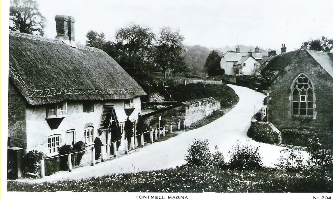 FONTMELL MAGNA – what memories it brings back to the older inhabitants, who, as I notice sadly, are getting fewer in number as time creeps on. It’s iron foundry, saw mills, brewery, and flour mills have all disappeared, but Collyer’s Brook and our dear old Cross Tree still remain; what tales the latter could tell, some sad and some not worth repeating! Our maypole, having succumbed to time and weather, is no more. Time brings changes, but to many it is still old Fontmell.