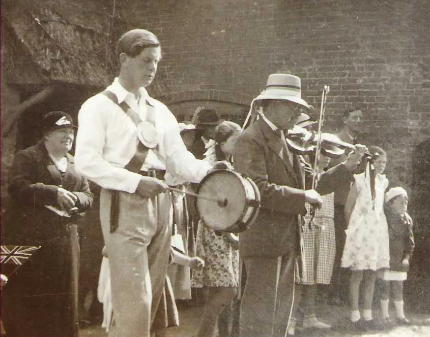 At that time we had 75 to 90 children at our school, without the new classroom, and three teachers to teach us. I often think of the days at school, Empire Day especially, when we used to march to the old rectory, have a bun and a bottle of ‘pop’, and then a half-day holiday. I wonder what the comments would be if our present parson rode to hounds, as Canon Edmonds did then on his grey horse. As time went by, the late Mr Rolf Gardiner came to Springhead, introducing folk-dancing and sword-dancing. What a lovely sight, the girls in their pretty dresses, and the men and lads in dark breeches, white shirts stockings. On May Day and other occasions we used to dance round the village, and on Plough Monday we travelled round the towns and villages doing the Plough Dance. Once we did it in Dorchester for the Minister of Agriculture, and once in London at a Plough Sunday Service. The Friendly Society had their annual fete with the Shaftesbury Band leading the procession with a large banner. I often think of the Dramatic Society and the plays produced by Dr Appleyard in the school, but we old ones who used to take part are getting fewer and fewer.